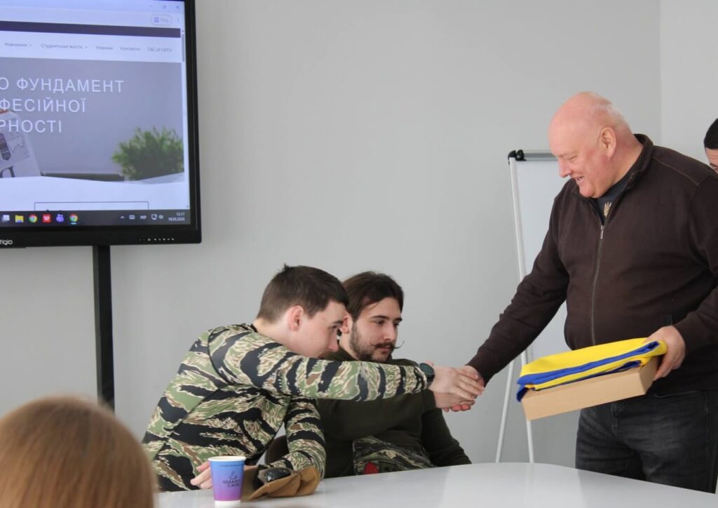 Олександр Гінайло, боєць «Любарта» – наш земляк і випускник нашого ж коледжу, який закінчував заклад вже під час війни, – завітав разом із побратимом Романом, позивний «Донбас» і посестрами.