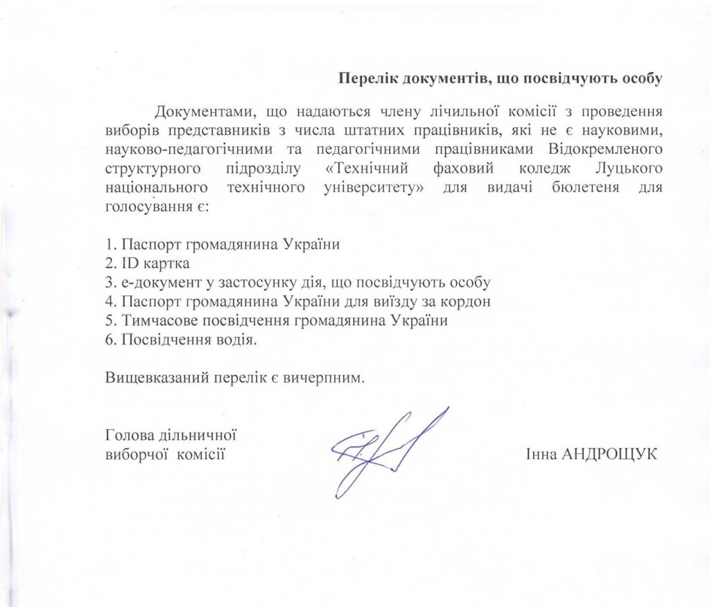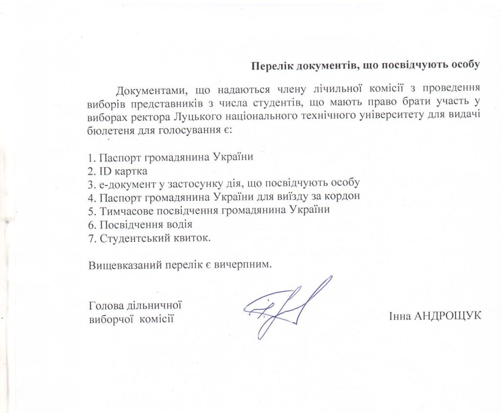 Протоколи дільничної виборчої комісії ТФК ЛНТУ з проведення виборів ректора ЛНТУ