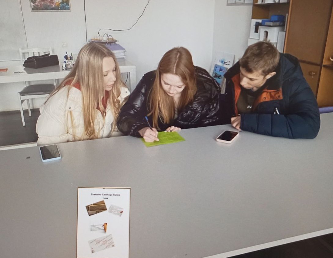 Студенти отримали маршрутні листи й вирушили «станціями» – від ребусів про країни до виправлення граматичних помилок. На ‘Country Rebuses’ вони ламали голову над назвами держав, на ‘Idioms Station’ вчилися розуміти справжній зміст ідіом, на ‘Grammar Challenge’ виправляли помилки, ніби справжні мовні редактори. В ‘Ocean of Numbers’ числа раптом заговорили англійською, а на ‘Sentence Builder’ народжувалися правильні, красиві речення зі сталими виразами.