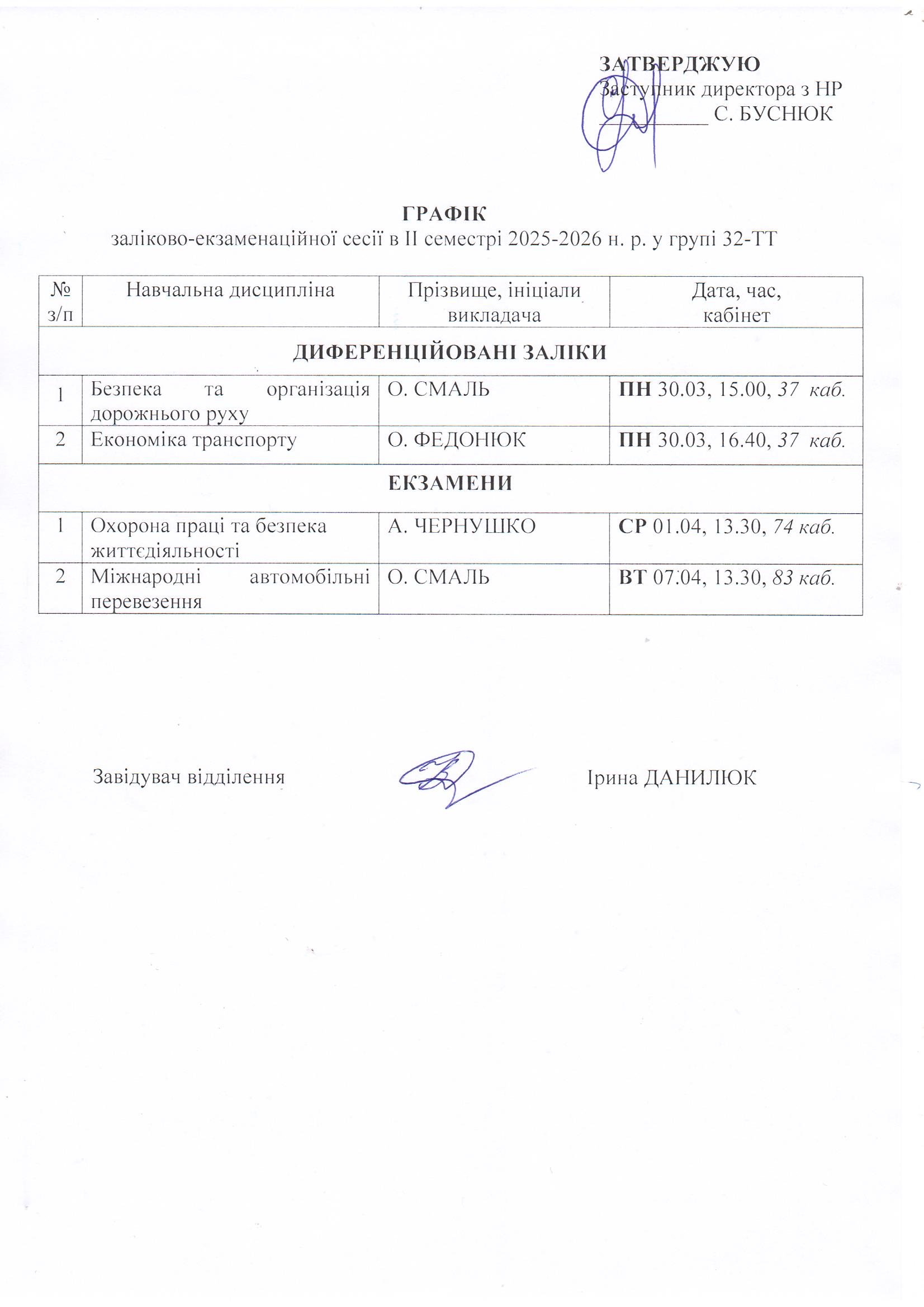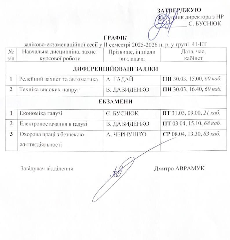 - Розпорядження про розподіл студентів груп 12-ТТ, 12-ПТ та 23-АТс на вибіркові дисципліни для вивчення у ІІ семестрі 2025-2026 н.р.