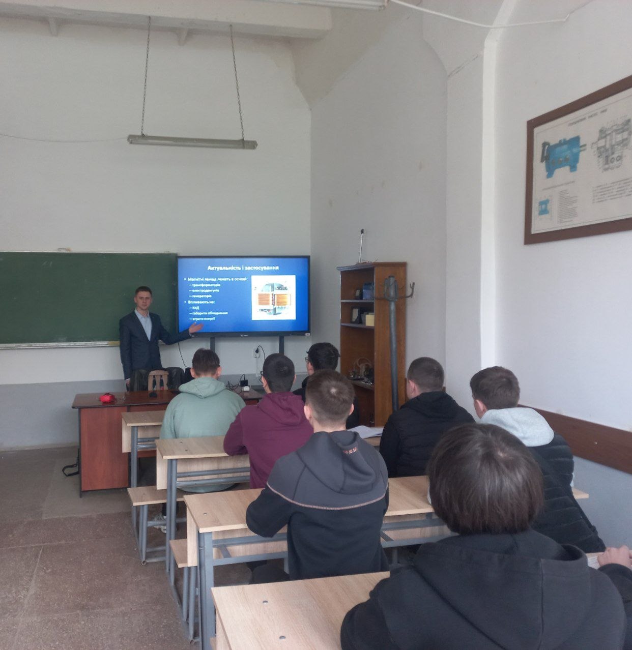 21 квітня в коледжі, в межах тижня циклової комісії з електричної інженерії, відбулося відкрите заняття для студентів групи 21-ЕТ. Тема звучить не дуже просто: «Намагнічування, магнітні матеріали, магнітопроводи». Але насправді це про речі, які щодня поруч із нами: трансформатори, двигуни, електромережі.